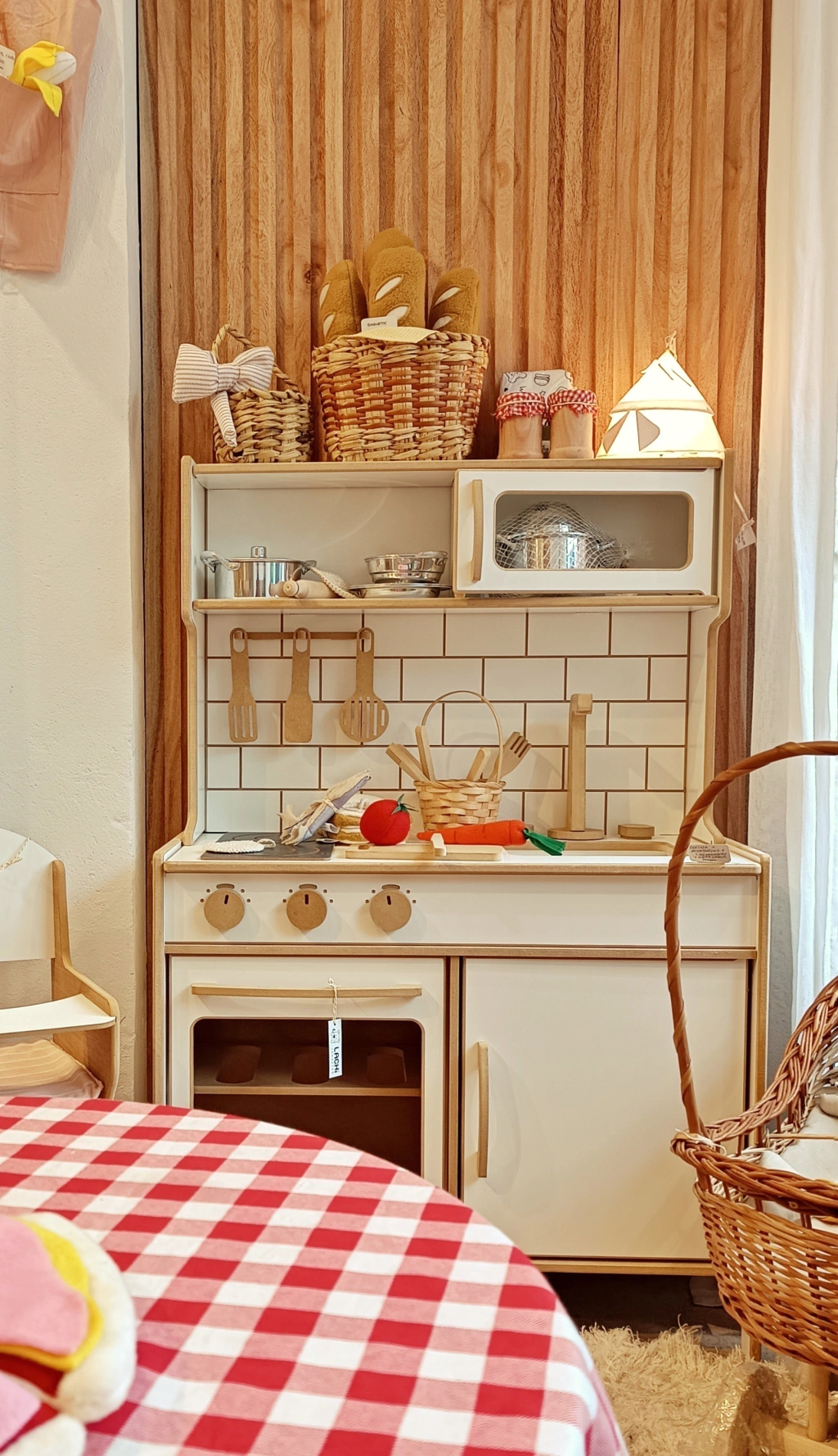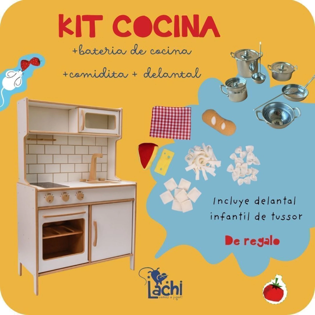 Es súper completa. Trae horno con puerta y estante. Estantes de guardado con puerta (no solo es una cocina, ahí podés guardar juguetes).
